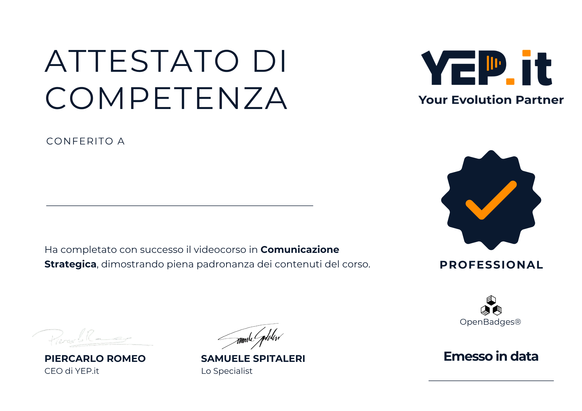 Al completamento di ogni corso riceverai un attestato che potrai inserire nel tuo CV e condividere sui social.
